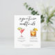 Esta sofisticada lista de cócteles de autor incluye una simple tipografía negra por encima de 2 de sus bebidas favoritas y sus ingredientes para su bar boda costero. Un dibujo de moda Cosmopolitan y Whiskey Sour le da un toque divertido a su menú de bar. Con los nombres de la pareja y la fecha de recepción.