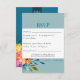 Elegante tarjeta RSVP sobre fondo turquesa de lujo. El texto es totalmente personalizable. En la colección encontrará versiones más clásicas o modernas. Tipografía elegante con elementos florales a mano en colores de verano brillantes. El color de fondo es completamente cambiable a sus preferencias. Plantilla de personalizado para su fecha e información personales. Existen diferentes combinaciones de colores y diseños de texto. De la moda clásica a la simple moderna, por favor vea la colección en mi tienda. Personalizable completo con tus textos personales, fotos y detalles. Encontrará más diseños y variaciones coincidentes en la tienda "Todo el diseño de Moda" bajo la colección "Invitación a la boda colorida de verano brillante" y no dude en contactarme si tiene alguna pregunta. Estoy feliz de ayudar en cualquier momento. Estacionamiento de Boda completo que coincide con sobres y Pegatinas de direcciones disponibles.