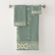 ¡Qué tal esta encantadora toalla de color verde azulada de sabios para marcar a su boda, y todo flanqueado con "Amor" escrito en un tipo de letra árabe, para ese regalo elegante y de diseño único que has estado buscando!