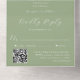 Las ramas de diseño minimalistas emiten invitaciones de boda verdes. Sencillo y limpio. El color de fondo se puede cambiar para que se ajuste al tema boda. Fuentes elegantes con estilo serif y caligrafía. boda de código web o qr