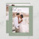Boda Verde de Salto del Presupuesto Gracias Cartas que tienen una foto en la parte delantera y trasera. Las tarjetas de agradecimiento contienen una moderna tipografía de escritura cursiva con letras a mano que son elegantes, simples y modernas para usar después de la minimalista celebración del día de la boda.
