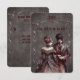 Una hermosa tarjeta de respuesta de boda de estilo gótico en papel negro vintage con una novia y un novio antiguos. Enmarcado en un elemento de color metálico.