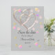 Guardar la fecha, boda vintage, luna de miel, recién casados, dos corazones personalizados, boda romántica, corazones amorosos, doble corazón Personalizado, te amo, ceremonia de boda, puedes cambiar el fondo y el texto.