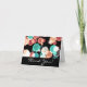 Una tarjeta de agradecimiento de boda. Un grupo de burbujas multicolores rebotando sobre un fondo negro. Estas formas esféricas son de un verde turquesa brillante, naranja pastel, óxido rojo y azul fresco. Contrastando con un fondo negro, estas formas circulares realmente destacan. Mensaje de agradecimiento personalizable dentro de la tarjeta.