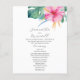 Estos programas de ceremonias de bodas tropicales cuentan con una flor de hibisco rosa vibrante con hojas de palma de monstera. Utilice los campos de plantilla para agregar su orden de servicio. La hoja de papel se revierte a un color rosa fucsia coincidente. Una elección botánica para bodas de jardín y destino. Para ver más diseños únicos como este visita Do Tell A Belle on Zazzle en www.zazzle.com/dotellabelle Arte y diseño de acuarelas únicas de Victoria Grigaliunas.