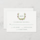 Estas elegantes tarjetas RSVP para bodas cuentan con una moderna cortina de agua decorada con uvas violetas, hojas verdes y viñas. El fondo es blanco y limpio. Esta carta de respuesta elegante y sencilla es perfecta para su boda minimalista con temática vinícola. Hemos usado arte de LABFcreations.