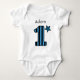1st Birthday Boy BLUE STRIPES Nombre personalizado V01B Cita idea de cumpleaños con un gran número con un patrón de felpa y letras divertidas para el cumpleaños de un niño especial. ¡Añade el nombre del niño especial! Todo el texto es personalizable.