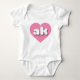 Este enterizo presenta un vibrante corazón rosado que contiene las letras negrita, blanca, redondeadas, fundas inferiores ak, una alegre abreviatura del estado de Alaska, la última frontera.