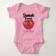 ¡Presentamos el traje de bebé rosa "Alegre Apple Bliss"! En el centro de esta encantadora decoración se encuentra una alegre manzana roja sonriente, que exuberante alegría con sus ojos brillantes y su expresión lúdica. Encima de la manzana, la leyenda festiva "Shanah Tovah" se muestra en una fuente divertida y animada. Debajo de la manzana, hay espacio para el texto de personalizable, lo que le permite agregar un mensaje especial y personal. Este traje de cuerpo rosa es perfecto para celebrar Rosh Hashanah con un toque de dulzura y alegría.