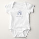 Esta camiseta de bebé para anuncio de embarazo de niño boho arcoíris de la Colección Rowan es perfecta para una sencilla fiesta de baby shower y para fotos de anuncio de bebé. Este diseño minimalista lindo presenta un arcoíris único de color azul pálido claro y blanco, y es perfecto para primavera o verano.
