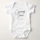 Celebra y anuncia la próxima llegada de un pequeño con un toque especial: este bodysuit personalizado "próximamente" es la forma perfecta de celebrar a una familia en crecimiento. Este babero personalizado presenta el mes y año de la fecha prevista del bebé y está impreso con un diseño limpio y moderno. Ideal como regalo para baby shower, un conjunto para anunciar el nacimiento o un recuerdo para atesorar durante años.