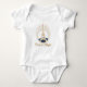 Dress your little one in the enchanting charm of the City of Light with this sweet and stylish baby bodysuit. The design features a delicate illustration of the Eiffel Tower, beautifully framed within a golden celestial circle and topped with a tiny royal crown.