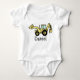 Suave el volcado amarillo de alta elevación con el nombre del bebé o cambiar el texto como prefiera. Añadir un nombre o hacer uno por cada mes del primer año del bebé.