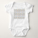 Este traje de bebé tiene un diseño Bauhaus de triángulos hechos de líneas negras continuas con círculos a rayas colocados por todos lados. Si te gusta el diseño pero prefieres colores diferentes, envíame un mensaje.