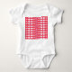 Este traje de bebé tiene un diseño Art Déco de diamantes y triángulos que parecen corbatas en rojo y rosa.
