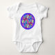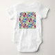 Body de Bebé Flores de Geranio. Diseño divertido y lindo con fondo azul. Diseño en la parte delantera y trasera,