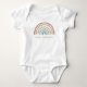 Nuestro Bodysuit para bebé Boho Arcoíris neutro en cuanto al género presenta un encantador arcoíris boho retro pintado a mano con acuarela anidado dentro de un marco de arcoíris pastel. Perfecto para dar la bienvenida a bebés niños o niñas, cada pieza de esta linda colección emana una elegancia despreocupada que captura la alegría y la anticipación de este hito especial. Desde invitaciones hasta decoraciones, infunde tu celebración con el encanto atemporal de nuestra encantadora colección, creando recuerdos tan mágicos como tu pequeño. Compra ahora y embarcate en un viaje de amor y risas con nuestra caprichosa colección de arcoíris boho retro para baby shower.