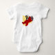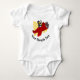 Traje para bebés con diseño con un ilustracion de un pingüino que vuela un avión rojo; ilustrado por Radka Kavalcova / MaxiHarmony