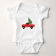 Navidad para llevar...Diseño de arte de Navidad lindo. Ilustración adorable de una camioneta roja recogiendo un árbol de Navidad. Ideal para decoraciones de Navidad, ropa y regalos.