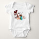 Esta juguetona ropa de bebé blanca muestra una animada escena personalizado inspirada en el clásico dúo animado — una maliciosa vaca marrón montando alegremente un pollo sobresaltado vestido con un gorra de vaquero y bandana. Con nubes de polvo y caras expresivas, es un divertido guiño a la comedia de temática occidental, perfecta para los pequeños aventureros