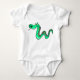 Esta prenda blanca de vestir para bebés muestra una divertida y brillante serpiente personalizado verde envuelta en una pose ondulada, decorada con coloridos puntos de polka a lo largo de su cuerpo. Con una expresión alegre y una lengua parpadeante, es un diseño divertido y llamativo perfecto para los pequeños que aman a los animales extravagantes y vibrantes.