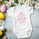 Este bodysuit de bebé presenta la imagen de texto rosa "Cazador por primera vez" con huevos de Pascua. Perfecto para la primera Pascua de su bebé.