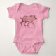 Las niñas hermosas parecen bonitas en rosa con un arte modelado del cerdo y de la mariposa.