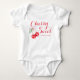 Viste a tu pequeño con un estilo dulce con este bodysuit personalizado para bebé "Cereza Dulce". Con cerezas de acuarela atadas con un delicado lazo de satén rosa y letras elegantes, este diseño inspirado en coquette se puede personalizar con el nombre de tu bebé para un toque verdaderamente único. Perfecto para regalos de baby shower, fotos de recién nacido o uso diario. También ideal para exhibir como parte de una decoración de tendedero de ropa para baby shower, una forma encantadora de mostrar tu tema "Cereza en la parte superior". Coordina maravillosamente con las invitaciones, tarjetas de agradecimiento, papel de regalo y decoración para fiestas a juego en la colección completa. Disponible en múltiples tamaños y colores de tela.