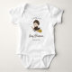 Celebra a tu pequeño mago en camino con este encantador bodysuit de baby shower de Harry Potter que presenta al propio Harry. Este diseño encantador incluye una adorable ilustración de Harry Potter con sus túnicas de Hogwarts, montando su escoba y listo para aventuras mágicas. El fondo está salpicado de estrellas coloridas para dar un toque de fantasía. Las fuentes elegantes y juguetonas muestran hermosamente tus detalles personalizados, incluyendo el nombre del bebé y la fecha prevista. Perfecto para cualquier fanático de Harry Potter, este anuncio de bodysuit de bebé trae un toque encantador a tu baby shower.