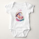 Body de bebé personalizado para Baby Shower de niña, Consigue uno para todos en la familia para hacerlos sentir especiales. Dulce suave rosa pastel, coral, azul y dorado tema de Baby Shower costero de playa. Una pequeña bebé durmiendo dentro de un mientras y concha dorada. Hermosas flores tropicales acuáticas caprichosas. Caballito de mar acuático, dólar de arena, flores tropicales y estrella de mar.