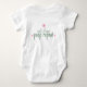 Vestir a su bebé con estilo con un traje corporal personalizado. Con una flor simple acentuada con corazones rosados, y un texto de personalizable que dice: "Come, Duerme, Poop, Repita", este diseño exuda feminidad y encanto. Modifique el texto "Eat Sleep Poop Repeat" para crear un regalo único para la ducha de bebé o una dulce sorpresa para la familia, amigos o compañeros de trabajo.