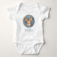 Body de Primera Navidad del Bebe ciervo lindo. Ciervo lindo sobre fondo azul de invierno. Personalice el bib con el nombre de su bebé y el año de nacimiento.