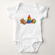 Simple, colorful, and timeless—this baby bodysuit features a charming trio of classic toys: a cuddly teddy bear, a rainbow stacking ring tower, and a bright multicolor ball. A nostalgic design that captures the essence of early childhood play.