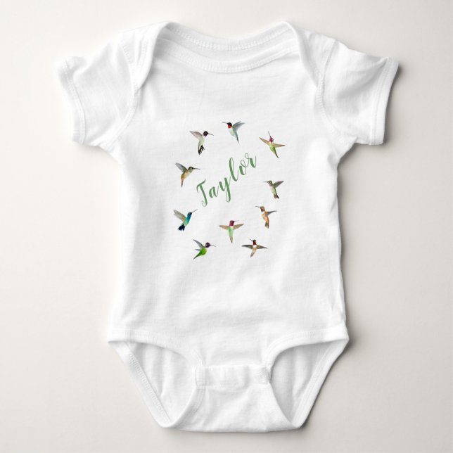 Trato para bebés Personalizado con varios colibríes nativos de Norteamérica. La fuente, el tamaño de fuente y el color pueden cambiarse.