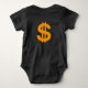 Traje para bebé con las palabras "Conoce mi valor" en el frente en colores africanos, con una corona dorada en la parte superior. La parte trasera tiene un signo de dólar dorado.