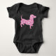 Un pequeño Dachshund de pequeños corazones rosas de amor