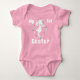 Celebra la primera primavera o Pascua de tu bebé con este lindo traje corporal. Este diseño presenta colores suaves en blanco y rosa con un texto que dice "Mi primera Pascua" en texto moderno y a la moda. Una corona de flores blancas y rosas bonitos le da un toque decorativo a este lindo traje de bebé conejito. ...