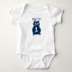 Búho azul en traje blanco de bebé para el primer cumpleaños del bebé dice "Ahora tengo un año".