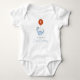 Traje de cumpleaños del primer año de los chicos dinosaurio con un dinosaurio azul pastel que sostiene un globo rojo con el número 1 dentro del globo en un entorno divertido y colorido con tema de dinosaurios. Personalízalo con la edad y el nombre de tu hijo.