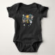 Celebra el momento especial de tu hijo con este encantador bodysuit de cumpleaños con tema de espacio exterior. Con planetas imaginarios, luna y estrellas en un esquema de colores azul marino y dorado. Este Bodysuit de bebé de cumpleaños del espacio exterior con galaxia, sol, luna, estrellas y planetas es perfecto para una sencilla fiesta de cumpleaños. El diseño caprichoso moderno muestra un fondo de acuarela azul marino adornado con un sol amarillo vibrante, una luna gris sonriente, planetas de colores pastel y estrellas doradas dispersas que brillan.