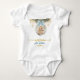 Celebrate a special milestone with this adorable baby bodysuit. The design features a cute watercolor gingerbread boy nestled inside a glass Christmas bauble, topped with gold glitter confetti.