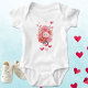 This baby bodysuit with a whimsical flower bunch and sweet kawaii faces looks adorable little ones for Valentine's Day or any day. The flowers accented with pink hearts. Select your size and choice of color.