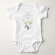 Un gran regalo para cualquier baby shower con tema de dinosaurio adorable. Regala este adorable Bodysuit de bebé Dinosaurio Adorable que presenta preciosos dinosaurios bebé de acuarela que están emocionados de finalmente ver a su nuevo amigo que acaba de "salir del cascarón". Es muy fácil personalizar con tu propio mensaje y nombre. Una hermosa combinación de acuarela en verde, azul, naranja, rojo y amarillo.