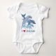 La familia Cute Dolphin para nadar. Azul suave en tonos azules. El texto dice que yo, los delfines del corazón.