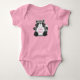 Diseño adorable de ducha de bebé de mapache con fondo rosa es ideal para una niña en camino. El dibujo animado lindo de este animal del bosque es divertido y dulce con un estilo de animal de peluche, ¡genial para un tema de ducha de bebé de animales del bosque!