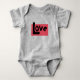 Este Amor Negro y Rojo sabe No Bounds baby bodysuit presenta la palabra Love, demasiado grande para ser constreñido, se extiende fuera de la caja de rojo. En la parte de atrás, "El amor no conoce límites" también se libera de restricciones más allá de los límites de una caja con bordes rojos. Las letras negras audaces proclaman incondicionalmente el amor.
