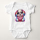 Un alegre y juguetón diseño de traje de bebé con el icónico ratón Minnie en su característico vestido rojo polka-dot. Los colores vivos y la adorable pose capturan la magia y la alegría de Disney.
