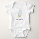 Un lindo traje de bebé neutro de género o una pieza con un adorable ilustracion de una niña que nace. Incluye un texto que dice "Acabo de eclosionar"