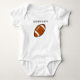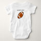 Un balón de fútbol en un body que es brillante y colorido con el niño de papá.