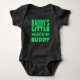 El traje de bebé de Little Hunting Buddy de este papá está en una fuente verde brillante.